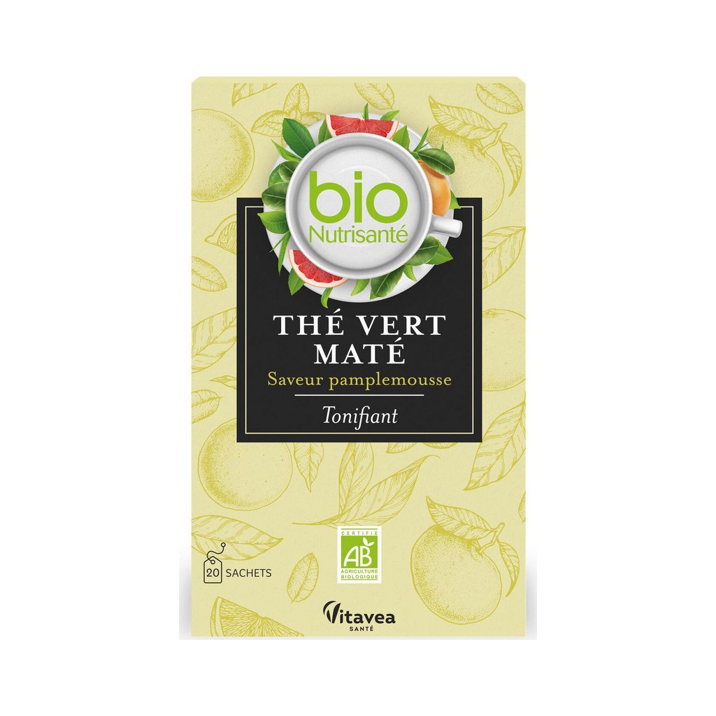 NUTRISANTE Thé vert maté saveur pamplemousse Tonifiant (la boite de 20 sachets)