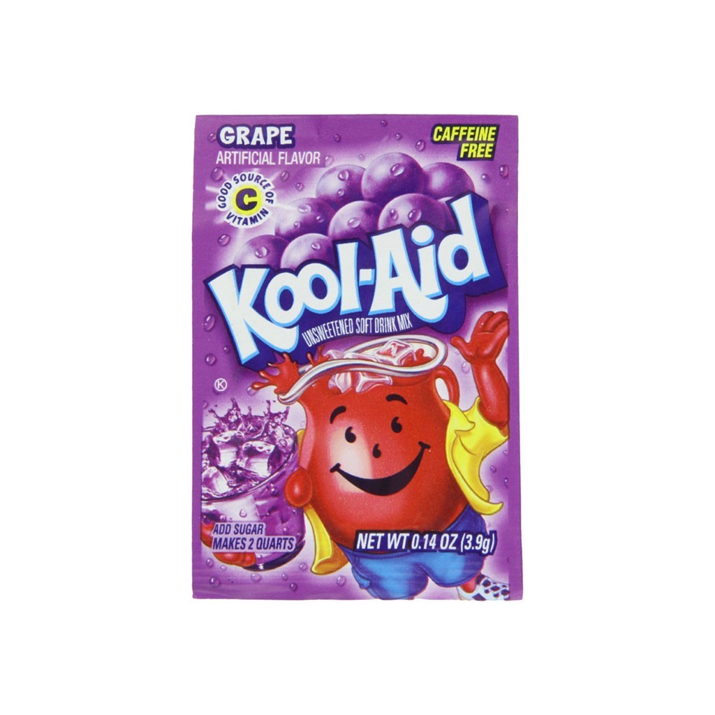 Versez la poudre Kool-Aid Raisin dans de l'eau pour obtenir une boisson très rafraîchissante. Acide citrique, maltodextrine, phosphate de calcium, sel, arôme artificiel, acide ascorbique (vitamine C), E129, E132.