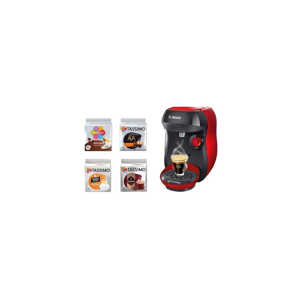 Bosch Cafetière à dosette Happy TAS1003 rouge + 4 packs de T-Discs