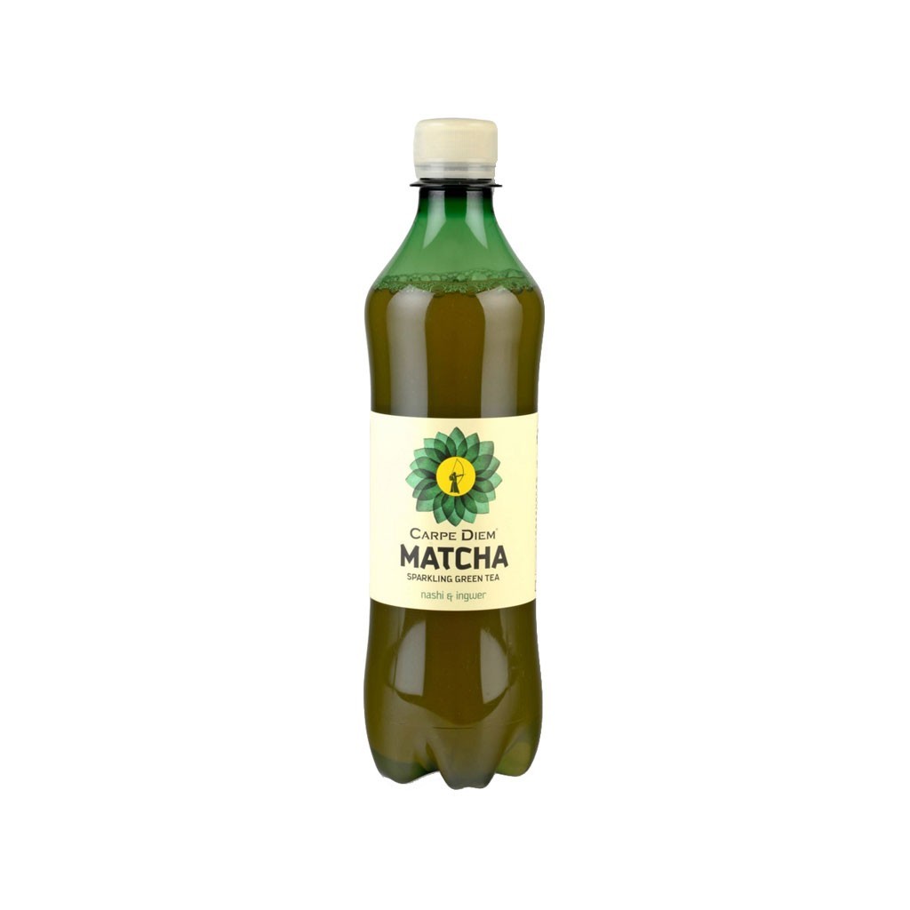 Le Matcha est de la poudre de thé vert broyé utilisé dans la cérémonie du thé japonaise. Il a une couleur verte intense et un goût sucré, légèrement acide. Le thé contient plusieurs carotènes et les vitamines A, B, C et E. Infusion de thé vert et matcha (eau de source, le thé vert, matcha), 10% de jus de poire, jus de poire concentré, sucre de betterave, jus de citron à partir de concentré de jus de citron, dioxyde de carbone naturel, 0,5% de jus de gingembre, arôme naturel..